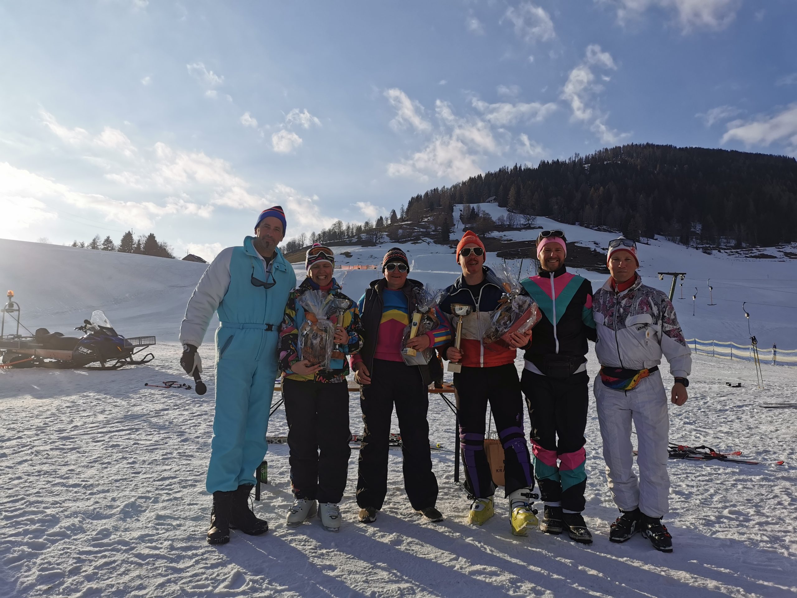 Der USV Krakauebene veranstaltet im Zuge dessen auch einen “Gaude Lauf” wo man seine Geschicklichkeit mit dem Material der 80er (kein Carvingski, BigFoots, Monoski….) unter Beweis stellen musste. Von Vereinstrainer Jonas Hlebaina und dem Team des USV Krakauebene wurde ein Torlauf mit gefinkelten Hindernissen inkl. Liftfahrt (an dieser Stelle auch ein herzlicher Dank an die Skilifte Krakau ) vorbereitet. Es galt der Mittelzeit am nächsten zu kommen.