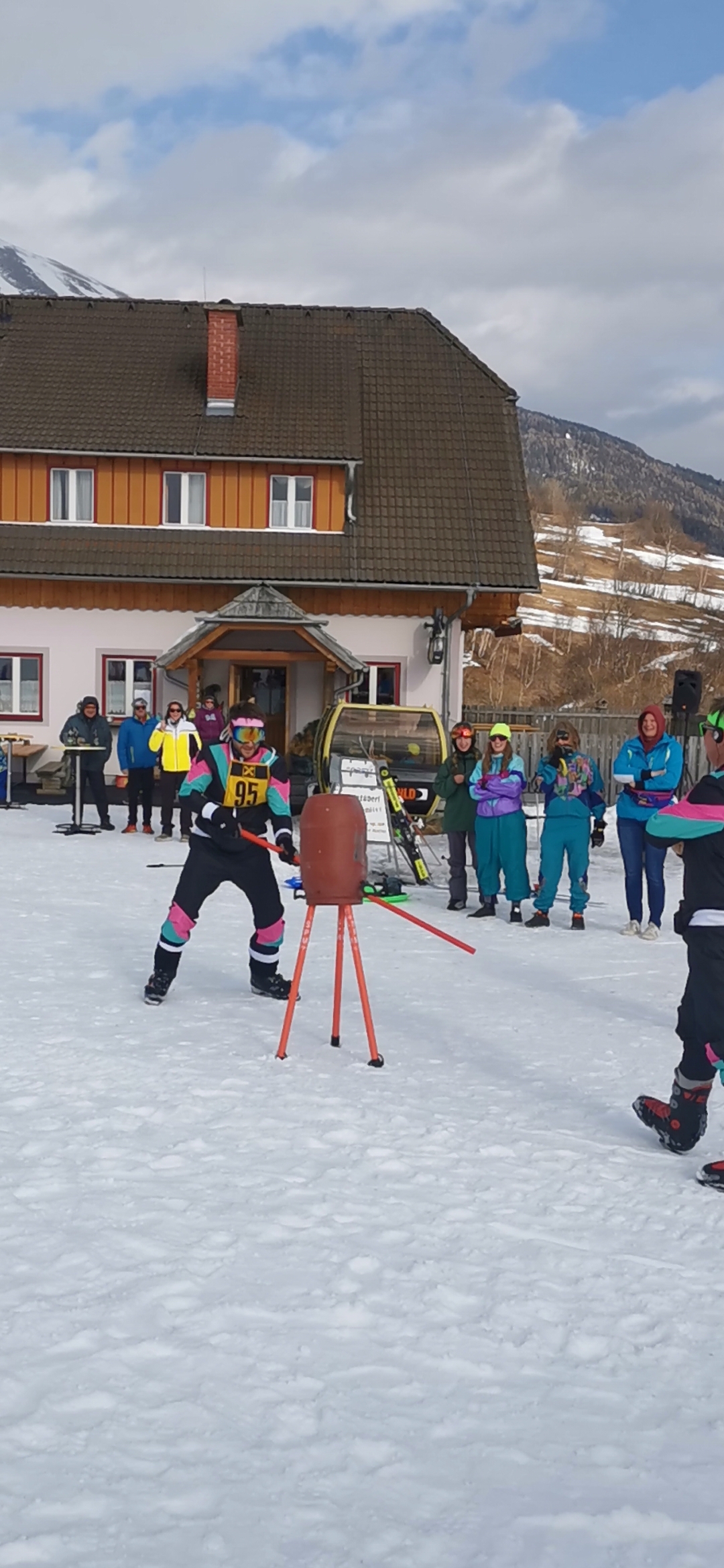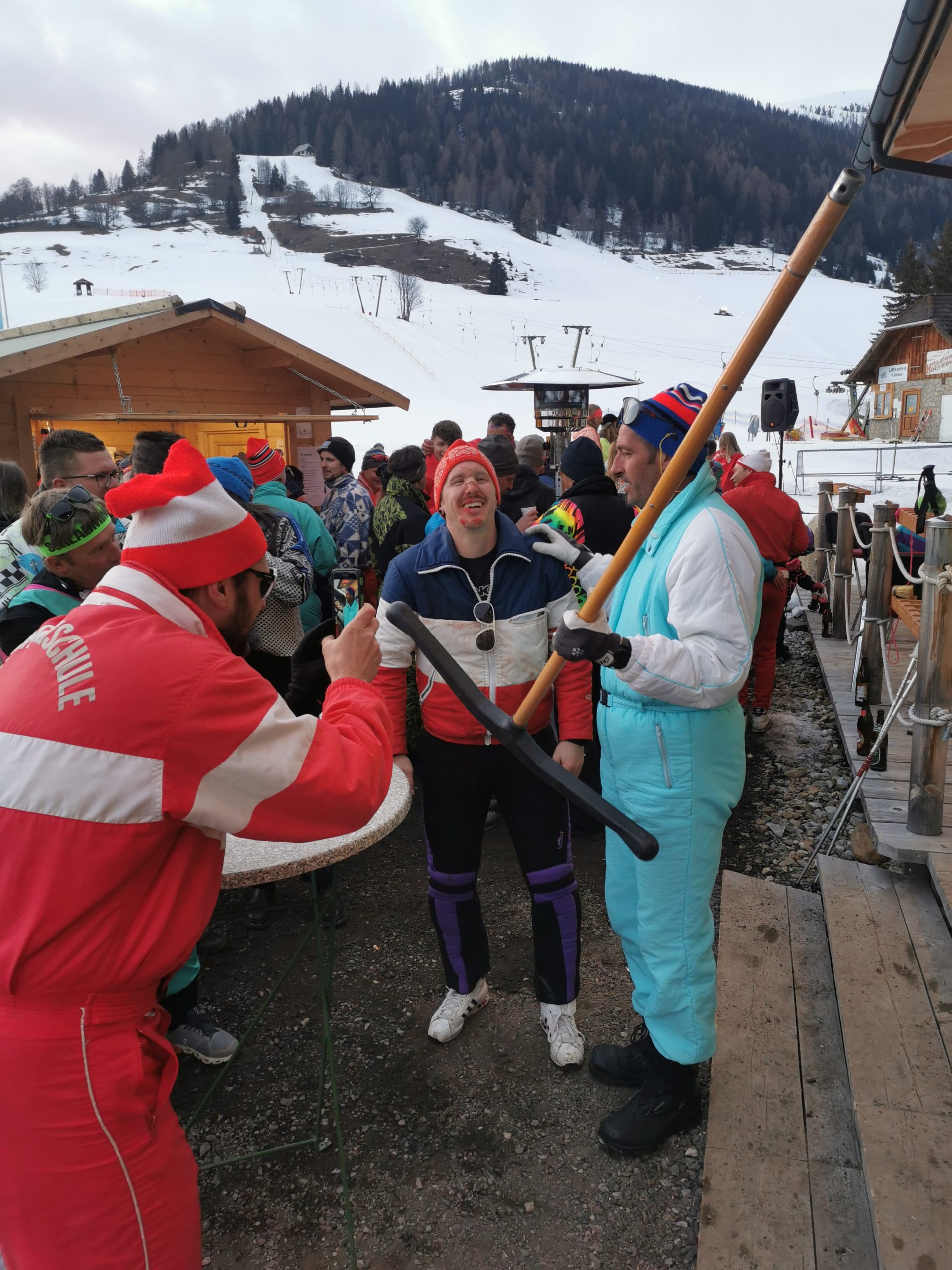 Der USV Krakauebene veranstaltet im Zuge dessen auch einen “Gaude Lauf” wo man seine Geschicklichkeit mit dem Material der 80er (kein Carvingski, BigFoots, Monoski….) unter Beweis stellen musste. Von Vereinstrainer Jonas Hlebaina und dem Team des USV Krakauebene wurde ein Torlauf mit gefinkelten Hindernissen inkl. Liftfahrt (an dieser Stelle auch ein herzlicher Dank an die Skilifte Krakau ) vorbereitet. Es galt der Mittelzeit am nächsten zu kommen.