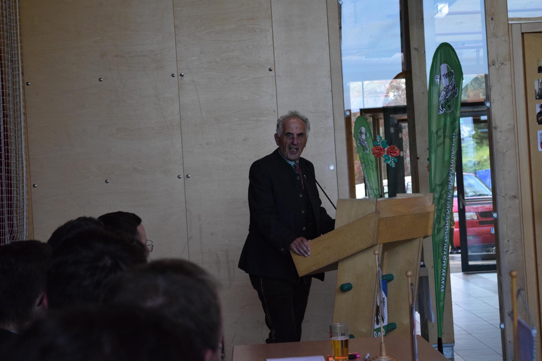 Obmann Stefan Siebenhofer konnte neben zahlreichen Ehrengästen auch viele Wegbegleiter und die Familie des langjährigen Obmannes Gottfried Lintschinger begrüßen. In seiner Laudatio an Gottfried gibt er einen kurzen Rückblick und würdigte die Leistungen Gottfrieds.