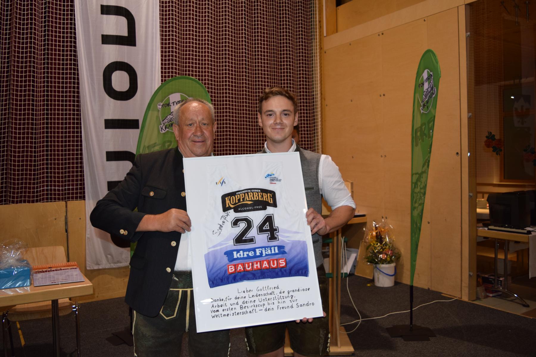 Zum Abschluss folgten noch weitere Ansprachen und Geschenkübergaben von Dieter Posch seitens des ÖSV, unserem langjährigen Freund und FIS-Telegierten Primoz Pöschl aus Slowenien und von unserem Ski Crosser Sandro Siebenhofer.